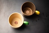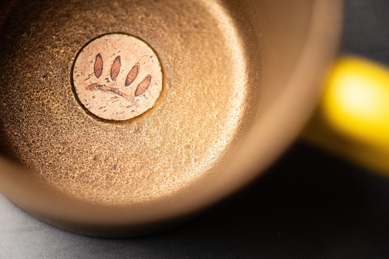 職人の手によって丁寧に作り上げられた信楽焼のマグカップ。ブロンズの色合いが上品で、持ち手のハンドル部分がイエローのアクセントカラーとなっています。信楽焼は、独特の風合いや質感があり、手に持つとほっと心が落ち着くような感覚を味わえます。